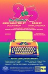 The poster for 9 to 5 The Musical features a typewriter, show information, and a content warning for the performance on a bright gradient background.