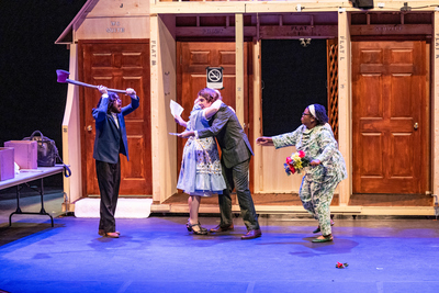 Performance photograph of Noises Off! by Michael Frayn, performed by A-State Theatre in November 2023.