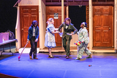 Performance photograph of Noises Off! by Michael Frayn, performed by A-State Theatre in November 2023.