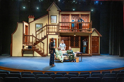 Performance photograph of Noises Off! by Michael Frayn, performed by A-State Theatre in November 2023.