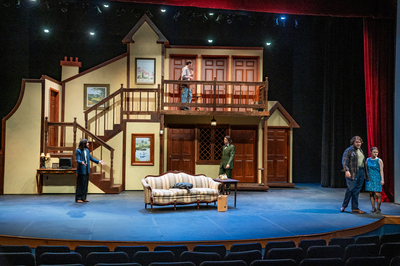 Performance photograph of Noises Off! by Michael Frayn, performed by A-State Theatre in November 2023.