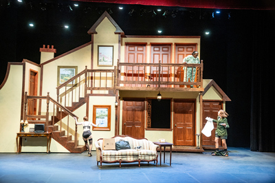 Performance photograph of Noises Off! by Michael Frayn, performed by A-State Theatre in November 2023.