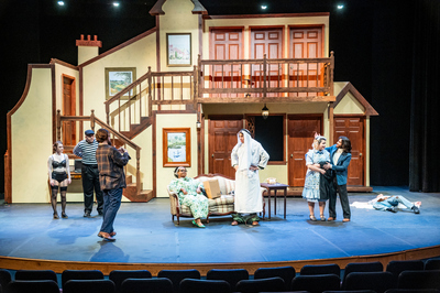 Performance photograph of Noises Off! by Michael Frayn, performed by A-State Theatre in November 2023.