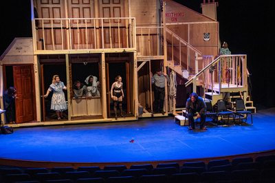 Performance photograph of Noises Off! by Michael Frayn, performed by A-State Theatre in November 2023.