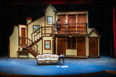 Performance photograph of Noises Off! by Michael Frayn, performed by A-State Theatre in November 2023.