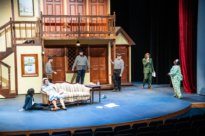 Performance photograph of Noises Off! by Michael Frayn, performed by A-State Theatre in November 2023.
