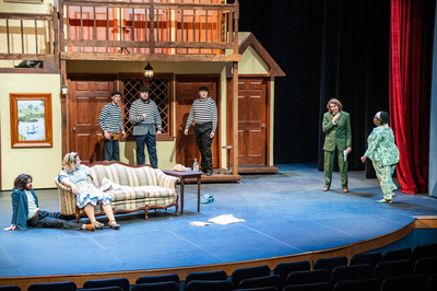 Performance photograph of Noises Off! by Michael Frayn, performed by A-State Theatre in November 2023.