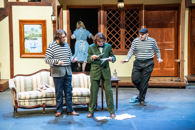 Performance photograph of Noises Off! by Michael Frayn, performed by A-State Theatre in November 2023.