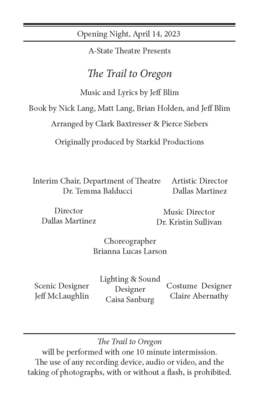 A Musical parody by Jeff Blim, Matt Lang, Nick Lang; Performed by A-State Theatre in April 2023.