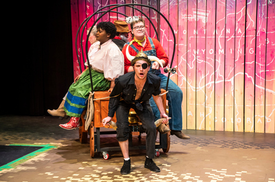 Performance photograph for The Trail to Oregon! performed by A-State Theatre in April 2023.
