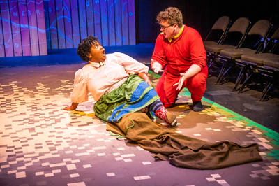 Performance photograph for The Trail to Oregon! performed by A-State Theatre in April 2023.