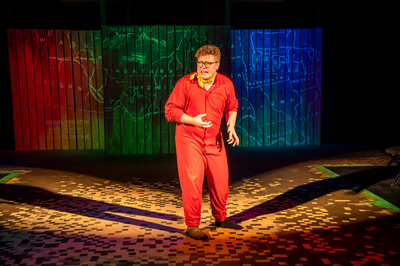 Performance photograph for The Trail to Oregon! performed by A-State Theatre in April 2023.