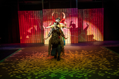 Performance photograph for The Trail to Oregon! performed by A-State Theatre in April 2023.