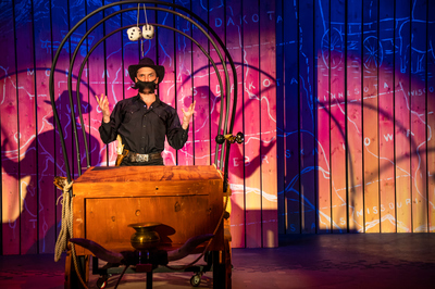 Performance photograph for The Trail to Oregon! performed by A-State Theatre in April 2023.