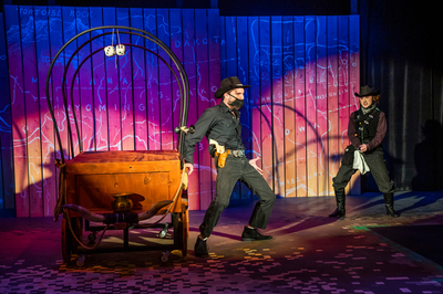 Performance photograph for The Trail to Oregon! performed by A-State Theatre in April 2023.
