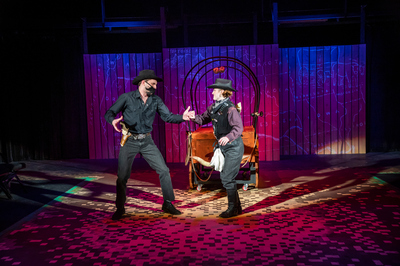 Performance photograph for The Trail to Oregon! performed by A-State Theatre in April 2023.