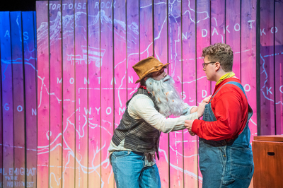 Performance photograph for The Trail to Oregon! performed by A-State Theatre in April 2023.