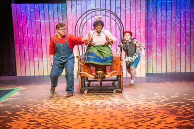 Performance photograph for The Trail to Oregon! performed by A-State Theatre in April 2023.