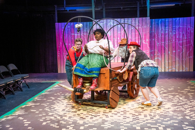 Performance photograph for The Trail to Oregon! performed by A-State Theatre in April 2023.