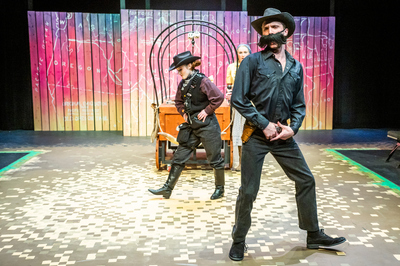Performance photograph for The Trail to Oregon! performed by A-State Theatre in April 2023.