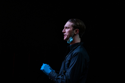 Performance photograph for The Trail to Oregon! performed by A-State Theatre in April 2023.
