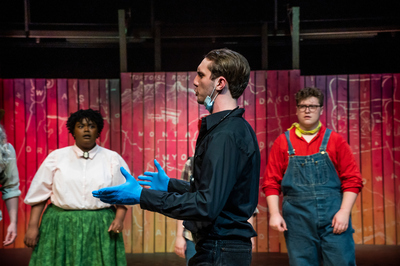 Performance photograph for The Trail to Oregon! performed by A-State Theatre in April 2023.