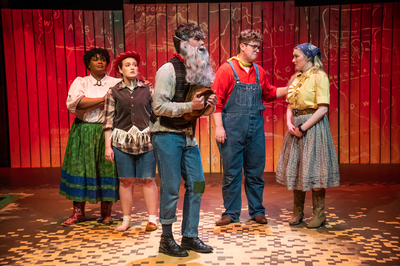 Performance photograph for The Trail to Oregon! performed by A-State Theatre in April 2023.