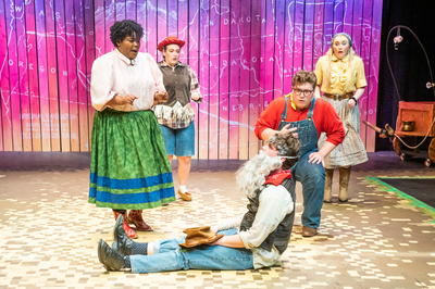 Performance photograph for The Trail to Oregon! performed by A-State Theatre in April 2023.
