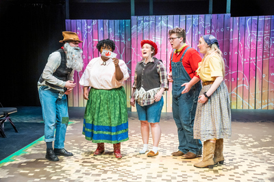 Performance photograph for The Trail to Oregon! performed by A-State Theatre in April 2023.