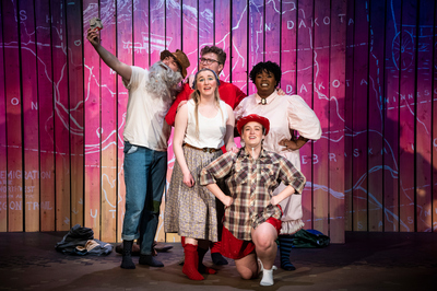 Performance photograph for The Trail to Oregon! performed by A-State Theatre in April 2023.
