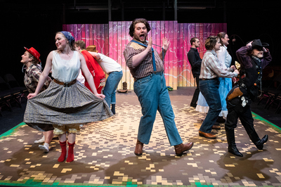 Performance photograph for The Trail to Oregon! performed by A-State Theatre in April 2023.