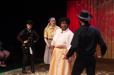 Performance photograph for The Trail to Oregon! performed by A-State Theatre in April 2023.