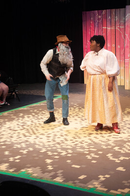 Performance photograph for The Trail to Oregon! performed by A-State Theatre in April 2023.