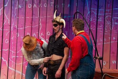 Performance photograph for The Trail to Oregon! performed by A-State Theatre in April 2023.