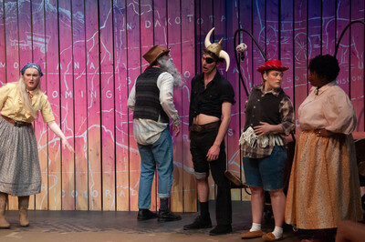 Performance photograph for The Trail to Oregon! performed by A-State Theatre in April 2023.