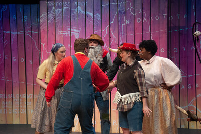 Performance photograph for The Trail to Oregon! performed by A-State Theatre in April 2023.