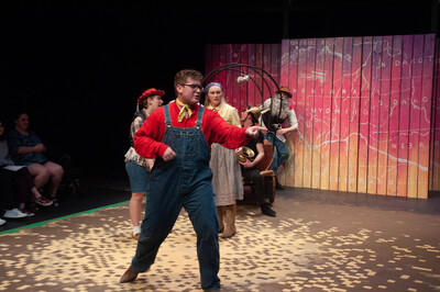 Performance photograph for The Trail to Oregon! performed by A-State Theatre in April 2023.