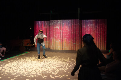 Performance photograph for The Trail to Oregon! performed by A-State Theatre in April 2023.