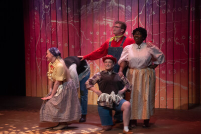 Performance photograph for The Trail to Oregon! performed by A-State Theatre in April 2023.