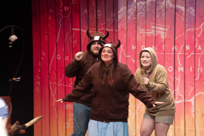 Performance photograph for The Trail to Oregon! performed by A-State Theatre in April 2023.
