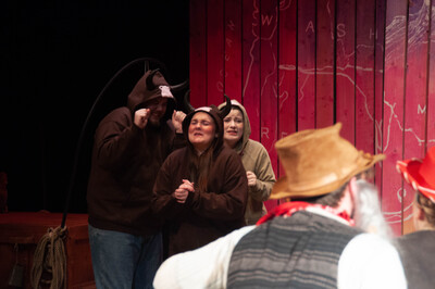 Performance photograph for The Trail to Oregon! performed by A-State Theatre in April 2023.