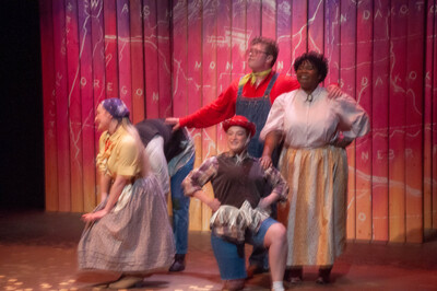 Performance photograph for The Trail to Oregon! performed by A-State Theatre in April 2023.