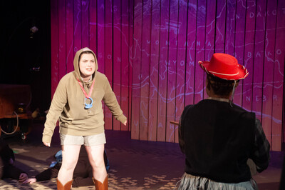 Performance photograph for The Trail to Oregon! performed by A-State Theatre in April 2023.