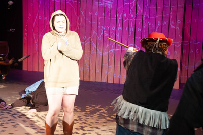 Performance photograph for The Trail to Oregon! performed by A-State Theatre in April 2023.