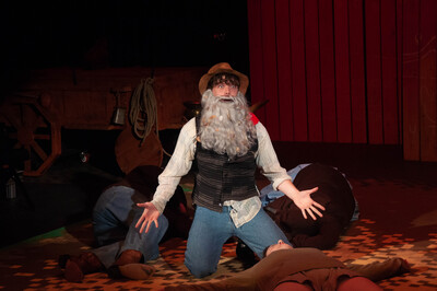 Performance photograph for The Trail to Oregon! performed by A-State Theatre in April 2023.