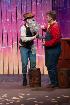 Performance photograph for The Trail to Oregon! performed by A-State Theatre in April 2023.