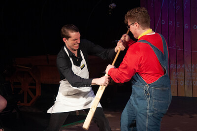 Performance photograph for The Trail to Oregon! performed by A-State Theatre in April 2023.