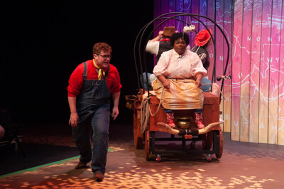 Performance photograph for The Trail to Oregon! performed by A-State Theatre in April 2023.
