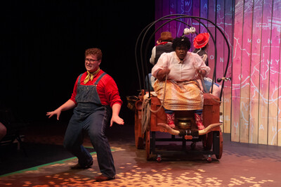 Performance photograph for The Trail to Oregon! performed by A-State Theatre in April 2023.