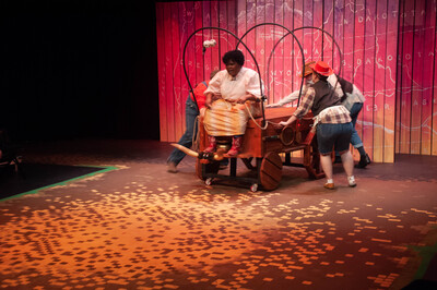 Performance photograph for The Trail to Oregon! performed by A-State Theatre in April 2023.